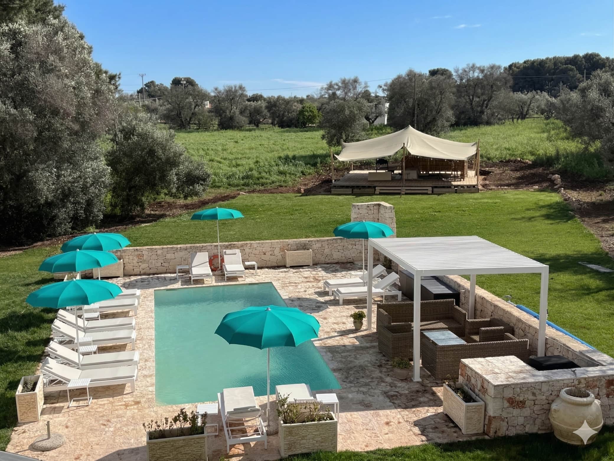 Masseria Annabella is a refined countryside haven nestled just 9km from the whitewashed hilltop town of Ostuni in Puglia. The elegant 6-bedroom villa, sleeping up to 13 guests, combines sleek modern interiors with traditional southern Italian charm. The home has 6 air-conditioned bedrooms (4 ensuites), stylish living areas, a stunning kitchen, and a separate sitting room for peaceful downtime. With a brand new tennis & activity zone and wellness centre, we offer guests a week of fun and unwind.