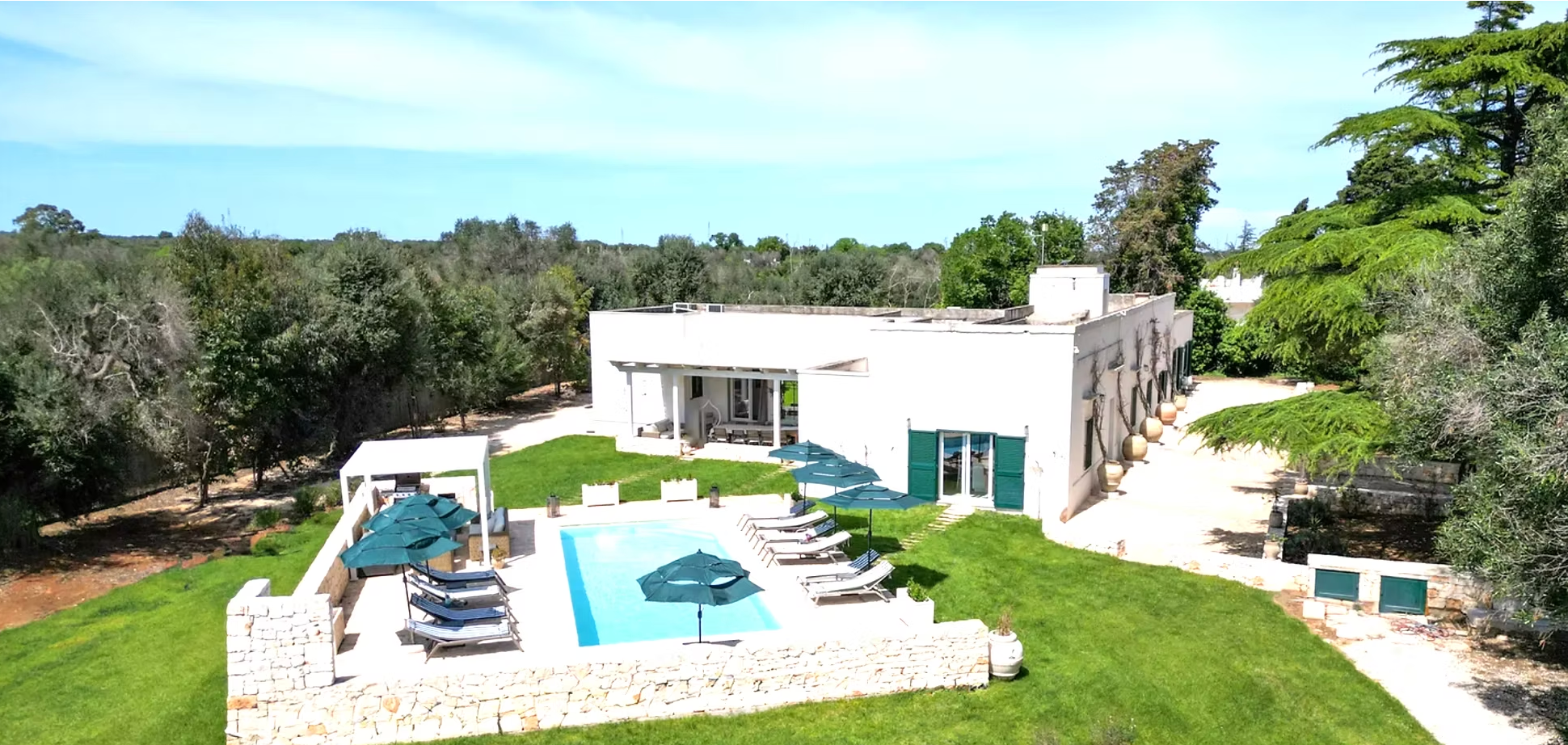 Masseria Annabella is a refined countryside haven nestled just 9km from the whitewashed hilltop town of Ostuni in Puglia. The elegant 6-bedroom villa, sleeping up to 13 guests, combines sleek modern interiors with traditional southern Italian charm. The home features 6 air-conditioned bedrooms (3 ensuites), a stylish living areas, a bright, well-appointed kitchen, and a separate sitting room for peaceful downtime. A dedicated playroom and games area plus a gym, make it an excellent for families.